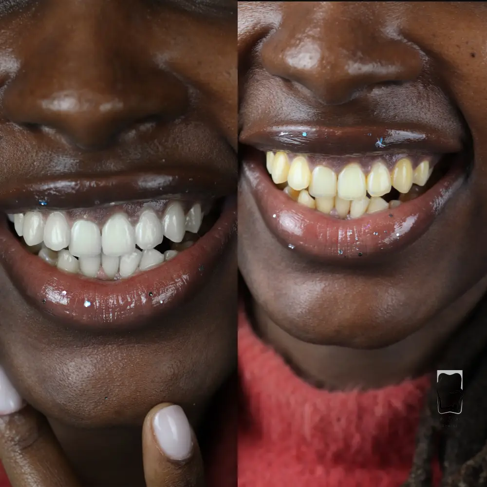 در صورتی که تعداد زیادی روکش، لمینت یا کامپوزیت روی دندانها وجود داشته باشد، بلیچینگ باعث ناهماهنگی رنگ دندانها میشود.